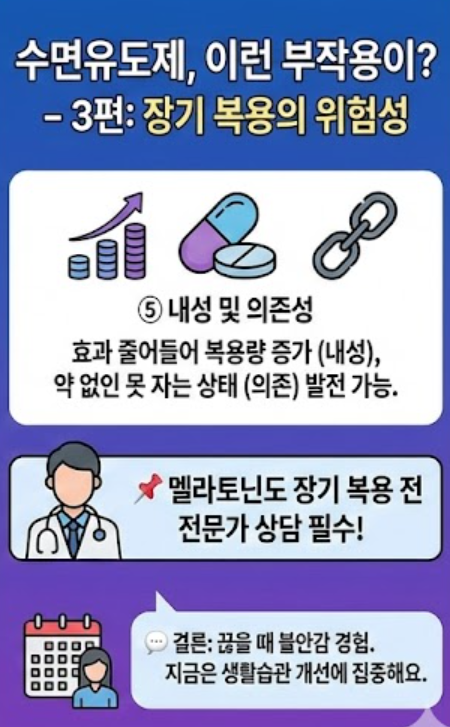 심하면 약 없이는 잠 못 드는 의존 상태로 발전할 수 있죠.